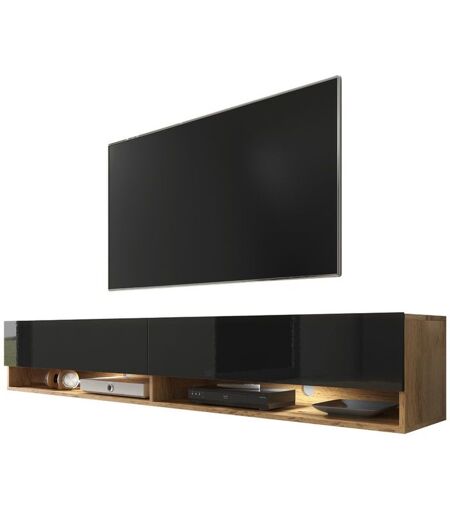 Selsey - wander - Meuble tv / Banc tv (chêne wotan / noir brillant, 180 cm, éclairage led)