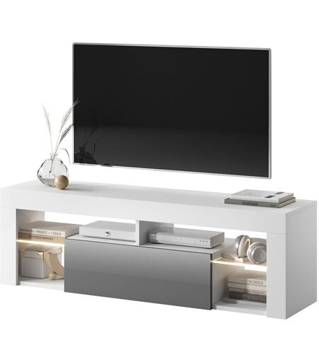 Selsey - bianko - Meuble tv avec led - 140 cm - blanc mat/gris brillant