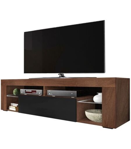 Selsey BIANKO - Meuble TV / Banc TV (140 cm, noyer mat / noir brillant, sans LED)