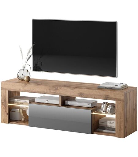 Selsey - bianko - Meuble tv / Banc tv (140 cm, chêne lancaster / gris brillant, éclairage led)