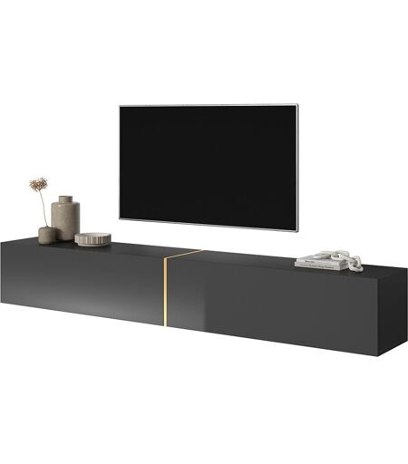 Selsey - bisira - Meuble tv 200 cm noir avec insert doré