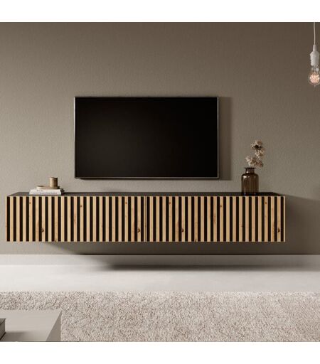 Selsey - telire - Meuble tv 175 cm noir avec façade artisanale chêne fraisé