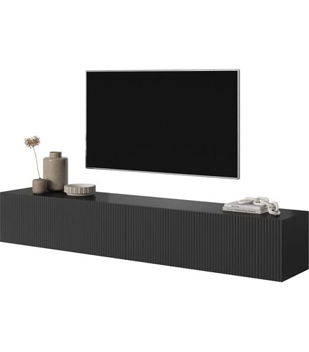 Selsey VELDIO - Meuble TV 175 cm noir avec façade fraisée