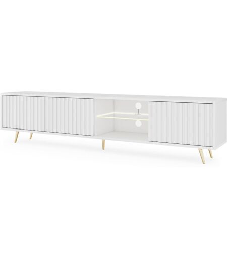 Selsey - bello - Meuble tv 3 portes led - 175 cm - weiß avec pieds dorés