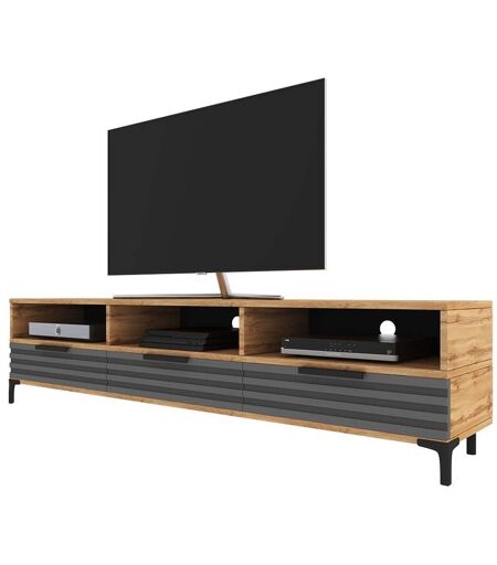 Selsey - rikke - Meuble tv - 160 cm - chêne wotan / gris mat - façade 3D - style moderne