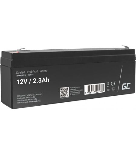 Green Cell AGM18. Tension des piles: 12 V, Couleur du produit: Noir, Capacité de la batterie: 2,3 Ah. Poids: 930 g, Largeur: 178 mm, Hauteur: 61 mm ...