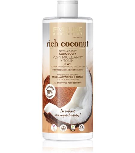 Eveline Cosmetics Rich Coconut eau micellaire et lotion tonique 2 en 1 500 ml