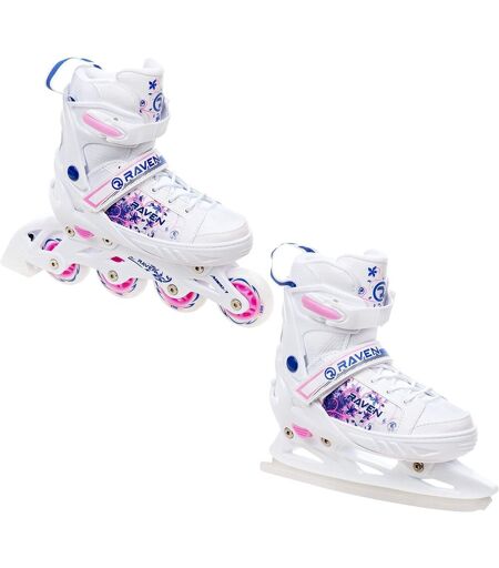 Roller En Ligne Meia Du 28 Au 32 + Patin A Glace Enfant Mixte Taille Ajustable Blanc/Bleu/Rose Raven