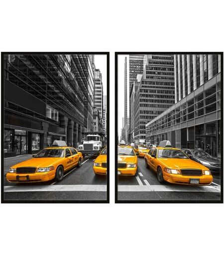TABLEAU ENCADRÉ 53x73cm Diptyque Ensemble de 2 tableaux New York New York Taxi P761