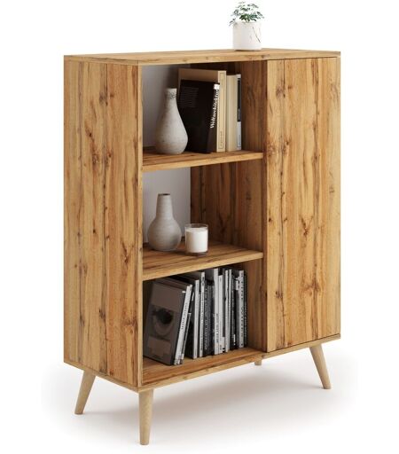Meuble Buffet, Commode, Style Scandinave, Armoire 1 Porte Et 3 Étagères- Blanc / Naturel Fondi