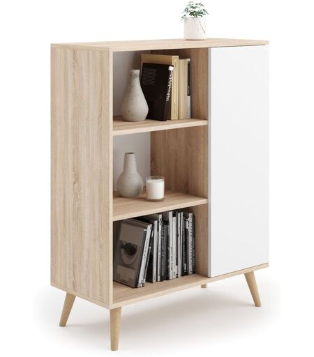 Buffet Fondi, Commode Avec 1 Porte Et Étagères - Chêne Sonoma / Blanc - L 90 X P 40 X H 116cm