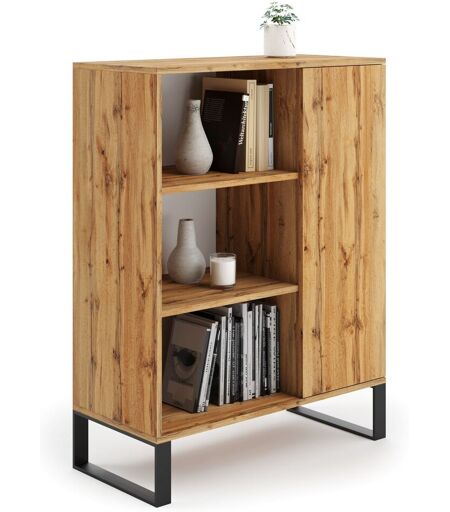 Meuble Buffet, Commode, Style Industriel , Armoire 1 Porte Et 3 Étagères Naturel - Fondi