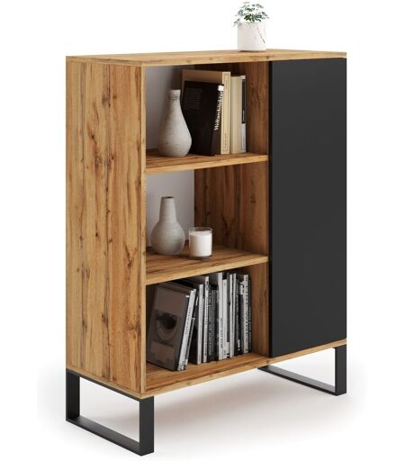 Meuble Buffet, Commode, Style Industriel , Armoire 1 Porte Et 3 Étagères Naturel / Noir Fondi
