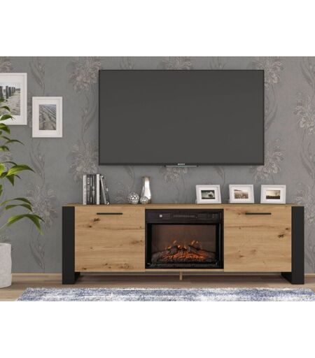 Bim Furniture - Meuble tv nuka 180x40x58 cm avec cheminée électrique Chêne Artisan/noir mat Table tv, Buffet, Table tv, Commode, Table Hi-Fi