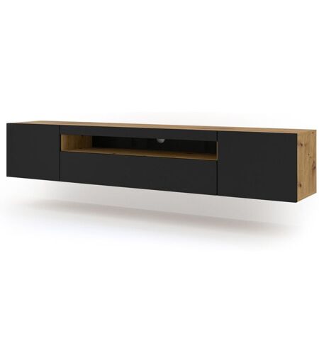 BIM FURNITURE Meuble TV mural 3 portes 200 cm Aurus Noir et Bois