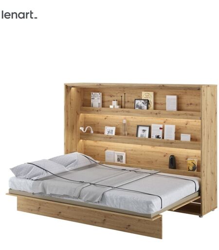 Description générale Le lit escamotable LENART est une solution idéale pour optimiser l'espace dans votre maison. Ce meuble astucieux se cache dans une armoire et se transforme facilement en une chambre confortable, parfait pour les salons, les petits appartements et les chambres d'enfants. Grâce à son mécanisme pneumatique moderne, vous pouvez ouvrir et fermer le lit sans effort. Sa construction robuste en métal et en aggloméré garantit une stabilité et une durabilité remarquables. Spécifications techniques Largeur : 211 cm Profondeur : 46 cm (fermé) à 168 cm (ouvert) Hauteur : 157 cm Surface de couchage : 140 x 200 cm Poids : 161 kg Compatibilité et accessoires Le lit est conçu pour être utilisé avec n'importe quel matelas d'une hauteur maximale de 20 cm et pesant entre 17 et 19 kg. Il est recommandé d'utiliser des matelas à ressorts ou à ressorts ensachés. Installation Les éléments nécessaires au montage mural ne sont pas inclus dans le kit. Il est conseillé de faire appel à un ...