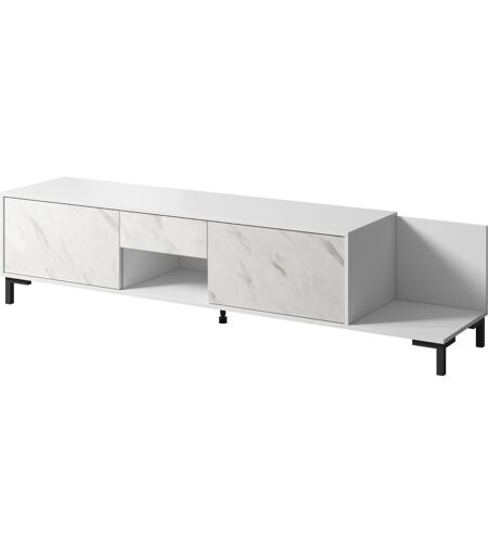Bim Furniture - Meuble tv marmo 195 cm 2D1SK blanc mat / marbre blanc
