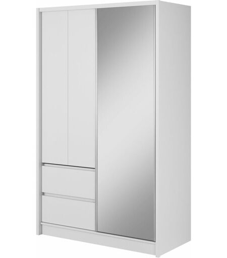 Bim Furniture - Armoire de rangement sara 134 cm Porte Coulissante Miroir 2 Tiroirs Blanc Mat