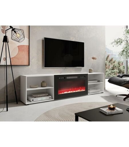 Bim Furniture - Salon Meuble tv avec cheminée noir rollo cm 200x33x48.5h blanc mat