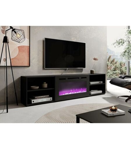 Couleur : Foyer électrique noir mat avec noir Dimensions de l'article : LxPxH 200 x 33 x 48,5 cm INFORMATIONS GÉNÉRALES : Quatre étagères ouvertes Cheminée électrique avec télécommande ; réglage de la température de 16 à 28 degrés C ; possibilité de changer la couleur des flammes Matériaux utilisés : corps : stratifié de 16 mm Dimensions : largeur 200 cm, profondeur 33 cm, hauteur 48,5 cm, version verticale avec pieds de 50,5 cm Couleur : noir mat avec cheminée électrique noire Description de la cheminée électrique : Alimentation : 220-240V / 50Hz ; Puissance : 1400W-1600W ; Fonction de chauffage : 16-28℃ ; Couleurs des flammes : rouge, bleu, violet/rose - commutable avec la télécommande. L'armoire roulante RTV est un meuble unique qui rappelle le style moderne - formes simples et fonctionnalité. Une solution innovante est la cheminée électrique intégrée qui, grâce à la télécommande, offre la possibilité de changer la couleur des flammes. L'espace de rangement est créé par quatre ...