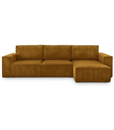 Homifab - Canapé d'angle convertible réversible 5 places avec coffre de rangement en velours côtelé jaune moutarde - Harper