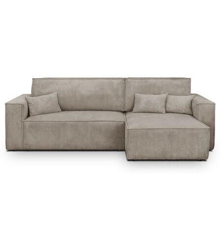 HOMIFAB Canapé d'angle convertible réversible 4 places avec coffre de rangement en velours côtelé taupe - Livia