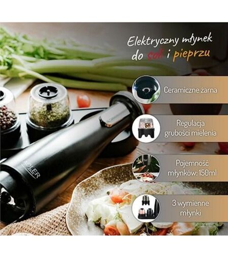 Adler - moulin à sel et à poivre électrique ensemble - 3 moulins - usb ad 4449B
