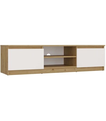 Topeshop - tivoli - Meuble tv style moderne - 140x40x36cm - 2 niches + 2 portes - Blanc et artisan