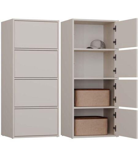 TOPESHOP ALMA - Commode haute de rangement 4 portes avec ouverture tip-on - Beige cachemire