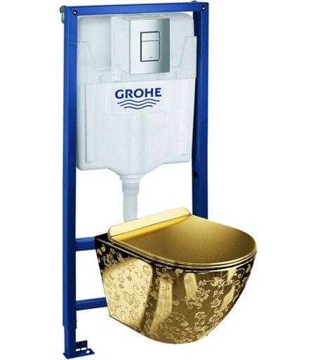 Domino GROHE Bâti-support Solido + Lavita WC Sofi Slim Golden Eye suspendu or sans bord + panneau de commande Delta 25 chrome Kit complet WC