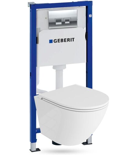 GEBERIT Duofix Basic Support Bâti-support + Lavita WC Sofi One suspendu blanc sans bord + panneau de commande Delta 25 chrome Kit complet WC
