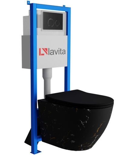 Bâti-support Lavita LAV 101 à 40 cm + WC Sofi Slim Fire sans bord + plaque de commande LAV 200.4.4 noir Kit complet WC