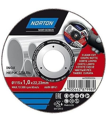 Norton Disque de coupe métal/inox 115x1x22,2 mm