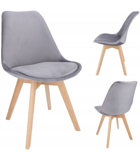 Une chaise de la collection BARI. Elle possède un dossier parfaitement profilé recouvert de velours qui, combiné à un coussin moelleux placé sur l'assise, assure un grand confort. Les pieds en bois de hêtre clair assurent stabilité et durabilité. La chaise est très pratique et fonctionnelle. ...