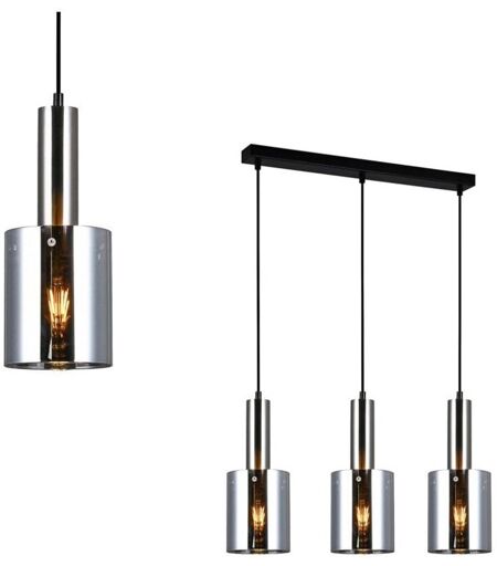 Italux - Sardo - Suspension moderne à 3 lampes, nickel satiné, abat-jour fumé, E27