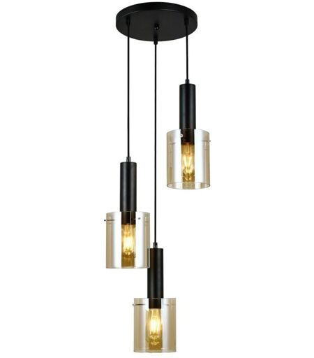 Italux - Sardo - Luminaire suspendu moderne noir à 3 lumières avec abat-jour ambre, E27
