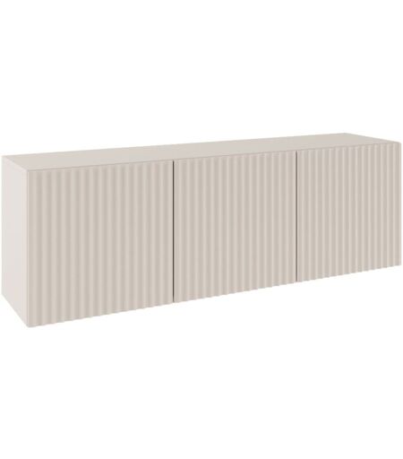 Selsey SUNDS – Meuble TV bas avec façades à lamelles rainurées, 3 portes, beige cachemire, 150 cm