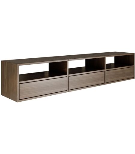Selsey - framme – meuble tv suspendu à trois abattants et étagères ouvertes – aspect noyer – 150 cm