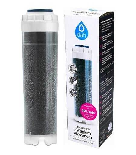 Filtre à eau au charbon actif Dafi La cartouche de charbon actif DAFI pour eau potable est conçue pour éliminer efficacement les contaminants organiques, le chlore et ses composés. La filtration a un effet positif sur le goût de l'eau, améliore sa couleur et son odeur. La cartouche de charbon adoucissant DAFI contient du charbon actif granulé obtenu à partir de coques de noix de coco. Grâce à lui, il est possible d'éliminer les métaux lourds et autres substances nocives de l'eau chlorée. Pour qu'elle soit potable, une filtration mécanique doit être effectuée au préalable. Paramètres : Marque : Dafi Application : Filtration de l'eau Durée d'utilisation : Jusqu'à 3 mois (selon la qualité de l'eau et le type de contaminants) Efficacité : Jusqu'à 30 L/min (selon la pression de l'eau dans le réseau d'alimentation en eau) Température de fonctionnement : 2 - 30 degrés longueur / largeur / hauteur / poids / volume : 0,274 m / 0,074 m / 0,078 m / 0,52 kg / 0,002 m3 ...