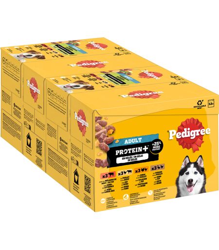 12x85g Pedigree Adult Sachet fraîcheur Protéine Plus en gelée 4 variétés d'aliments pour chiens humides