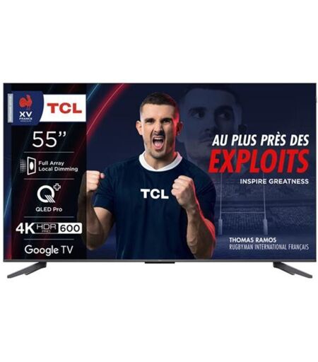 Téléviseur LED 139 cm - Résolution UHD 4K 3840 x 2160 pixels - Technologie QLED Pro - Full Array Local Dimming pour un niveau de réalisme et de contraste supérieur - Processeur d'image AiPQ - Fonction d'upscaling UHD Machine Learning AI SR - Les technologies 4K HDR PRO et Quantum Dots combinées vous proposent une expérience HDR supérieure offrant des couleurs précises dans les moindres détails - Compatible HDR10+, HLG et Dolby Vision - Google TV : vos divertissements préférés avec l'aide de Google. Compatible avec Alexa et l'Assistant Google (Microphone intelligent intégré au TV) - ChromeCast intégré - Game Master 3.0 avec 120 Hz Game Accelerator (HDMI 2.1 / VRR / ALLM) - Son 2.1 compatible Dolby Atmos® et DTS Virtual-X - Bluetooth audio - Design Premium sans cadre en aluminium noir brossé . ...