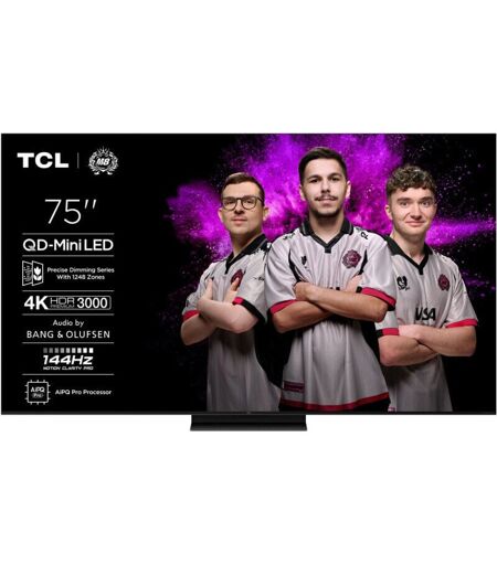 Product Features Écran 190,5 cm (75") avec résolution 4K Ultra HD 3840 x 2160 pour des images très détaillées Technologie QD-Mini LED avec jusqu'à 1248 zones et un contraste ultra-précis Luminosité élevée 3000 cd/m² et PPI 4600 pour une expérience visuelle dynamique Rafraîchissement natif 144Hz (optimisé jusqu'à 288Hz) pour une fluidité gaming et vidéo supérieure Smart TV Google TV avec applications 4K (Netflix, YouTube, AppleTV+) et compatibilité Assistant Google Système sonore Bang & Olufsen (60 W) avec Dolby Atmos et DTS:X pour un son immersif Image et performance Le TCL 75C79K intègre la technologie QD-Mini LED et un panneau Crystglow HVA pour offrir un contraste exceptionnel, des couleurs profondes et des détails précis. Le processeur AiPQ Pro optimise l'image en temps réel et l' upscaling UHD Deep Learning AI SR améliore les contenus non 4K. Fluidité et gaming Avec un affichage natif 144Hz et des fonctionnalités HDMI 2.1 (HDR, ALLM, VRR, eARC, FreeSync Premium Pro), ce ...