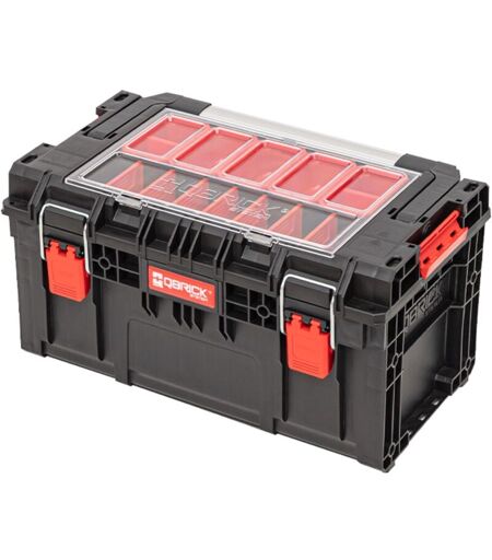 Contenu de la livraison: - 1x Qbrick System PRIME Toolbox 250 Expert empilable 535 x 327 x 277 mm 26l IP66 - 10x séparateurs - 5x inlays Description du produit: La Prime 250 est une grande boîte à outils avec une capacité de 26 litres. La construction étanche à l'eau et à la poussière (IP66), les fermetures en polyamide avec des colliers métalliques ainsi que la construction renforcée sont une garantie de protection des outils qui y sont rangés. Les boîtes PRIME peuvent résister à une pression allant jusqu'à 120 kg grâce à des nervures supplémentaires et offrent ainsi la possibilité de créer des plateformes de travail confortables. La boîte 250 est équipée de 3 séparateurs réglables et d'une étagère pratique. Le couvercle de l'organisateur EXPERT est équipé de 5 compartiments et de 7 compartiments réglables pour organiser les petites fournitures d'atelier ainsi que les fournitures courantes. La large poignée ergonomique en aluminium facilite le transport. Caractéristiques techniques: ...