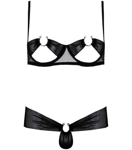 Ce ravissant Ensemble Chloé va vous sublimer au plus au point... Faites-vous plaisir avant tout ! Ce petit ensemble à croquer se porte en toutes occasions. Sexy, sobre et très chic, cet ensemble vous ira à ravir ! Le soutien-gorge est ouvert avec des armatures. Un joli voile transparent dessine les contours de la poitrine tandis que des bijoux en métal argent entourent vos tétons pour un parfait esthétisme. Les bretelles sont réglables. L'agrafage au dos est quant à lui plutôt classique. Un string très provocateur et très sensuel à la fois doté d'une large bande sur la taille accompagne le soutien-gorge pour un ensemble plein de splendeur. Lavable en Machine. Tailles XXL/XXXL. ...