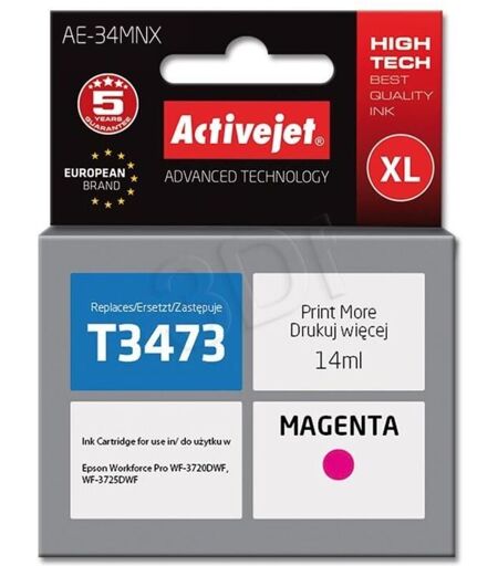 Cartouche d'encre Activejet AE-34MNX (remplacement pour Epson 34XL T3473 Supreme 14 ml magenta)