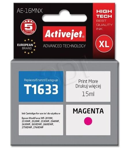 Cartouche d'encre Activejet AE-16MNX (remplacement pour Epson 16XL T1633 Supreme 15 ml magenta)