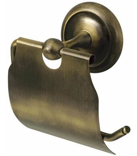 Porte-papier toilette fixé au mur avec des vis. Fabriqué en zamak avec une finition en laiton antique. Spécifications : - Matériau : laiton plaqué zamak antique ; - Largeur : 115 mm ; - Profondeur : 85 mm ; - Hauteur : 135 mm. ...