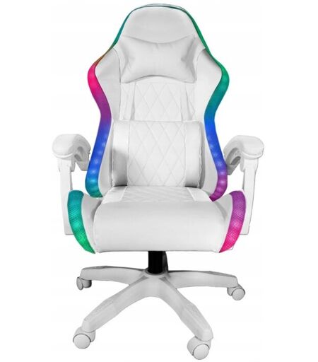 ✅ BUREAU ET GAMING "PRESTIGE LED" - BLANC Le fauteuil PRESTIGE LED est un fauteuil conçu pour les personnes qui apprécient le design original et unique , la finition et la décoration manuelles du fauteuil et de ses éléments. La chaise PRESTIGE LED garantit non seulement le confort pendant les longues sessions de jeu, mais fonctionne également très bien pendant de nombreuses heures de travail devant l'ordinateur. Ce modèle combine de nombreuses solutions éprouvées, comme un mécanisme permettant un réglage en douceur de l'angle du dossier et un design unique et élégant. Fabriqué en éco-cuir et composé de nombreux détails raffinés, où le résultat final recherché est le plus grand confort d'utilisation possible . Le fauteuil LED PRESTIGE allie la praticité d'un matériau de haute qualité à des couleurs originales inhabituelles et des détails originaux tels que un coussin lombaire au motif spécialement conçu et un siège et un dossier matelassés. L'ensemble de l'unité est composé de ...