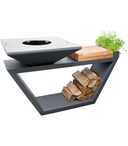 Brasera plancha G4 d'Artiss Design Le brasero plancha G4 combine un appareil de chauffage ext?rieur avec un appareil de cuisson convivial. Parfait pour passer de bons moments dans le jardin, il est con?u pour une utilisation toute l'ann?e. Il se compose d'une structure en acier graphite avec un vasque rond avec une plaque plancha de 12 mm en acier inoxydable. Avec son cendrier int?gr?, vous videz les cendres rapidement en fin d'utilisation. Pour cuisiner, le brasera plancha G4 poss?de une planche en bois et un petit bac sp?ciales pour les herbes aromatiques. Con?u avec un design unique, il s'int?gre ? merveille sur votre terrasse ou dans une cuisine ext?rieure. Caract?ristiques techniques Dimensions (L x l x H):169 x 90 x 98,2 cm Marque:ARTISS DESIGN Mati?re(s):Acier Graphite Poids:199 kg Type de produit:Brasero ...