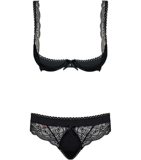 Découvrez ce magnifique et très sexy ensemble 2 pièces de la marque de lingerie Obsessive. Un soutien gorge demi-bonnets et push-up avec ses coussinets amovibles accompagné d'un superbe string de dentelle. Des bretelles réglables habillées de dentelle et une attache de dos par crochets réglables. Un confort parfait pour ce soutien gorge seins nus qui donne a cet ensemble un effet coquin. Lavable en Machine. Tailles S/M, L/XL. ...